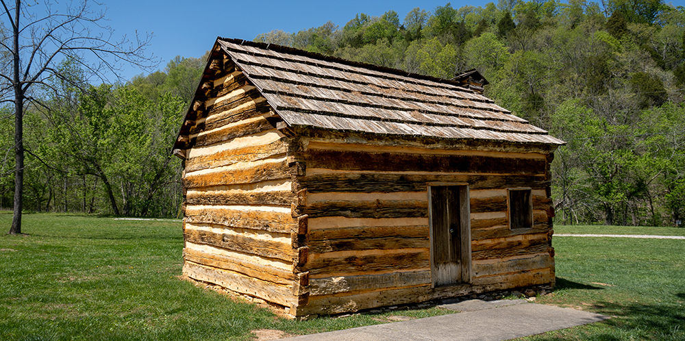 Rekonstruktion av en timmerstuga liknande den där Abraham Lincoln föddes 1809 i Kentucky. Foto: Adobe